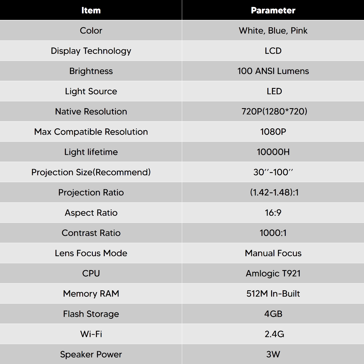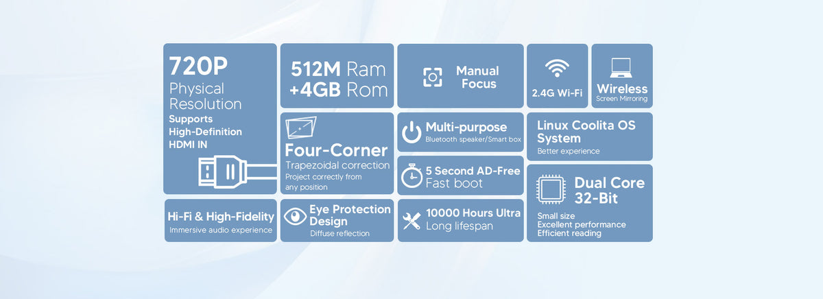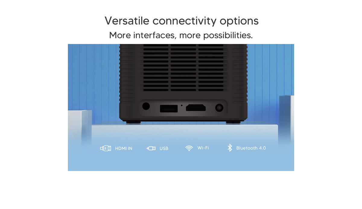 Bring your favorite entertainment on the go with the PROJECTOR PX1. Its lightweight and ultra-mini design makes it easy to take with you wherever you go. Experience sharp and vivid visuals with its 100 ANSI lumens brightness and 720P high definition display, while the dual dust-proof design ensures clear and consistent picture quality. Also, intuitive voice control and our self-developed MOS intelligent software system provide effortless operation with a rich selection of content. Plus, stay connected with versatile connectivity options. Enjoy a bright and immersive viewing experience with the PROJECTOR PX1.