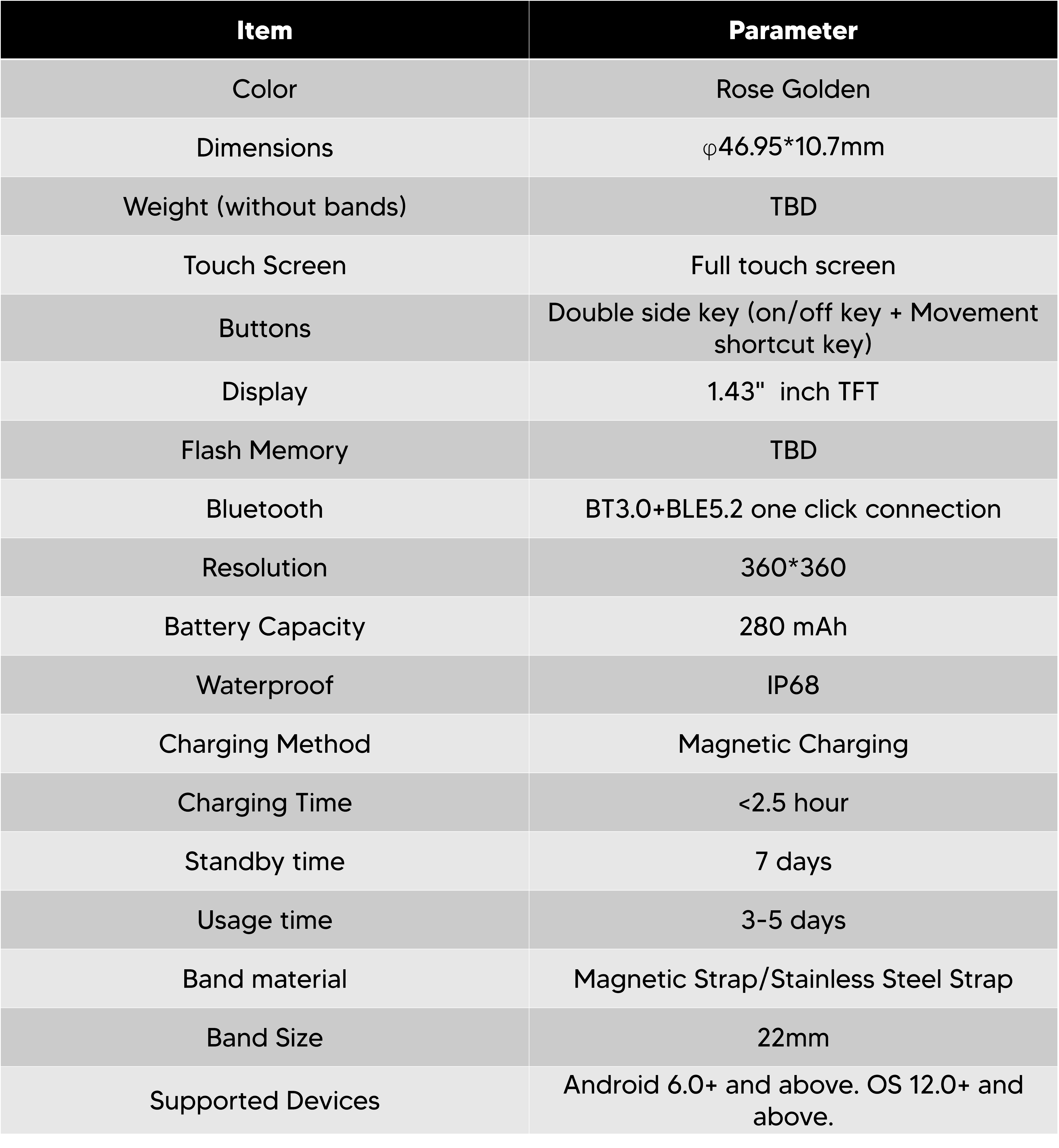 - Màn hình TFT HD lớn 1,43 inch 360*360 pixel